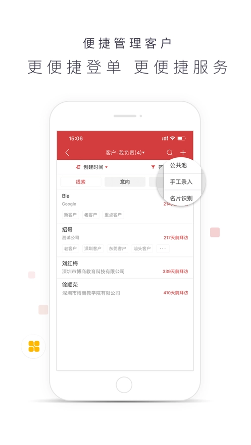 更便捷地登单,更高效地服务客户,还能通过扫描名片完成登单,省去繁琐的信息录入步骤。