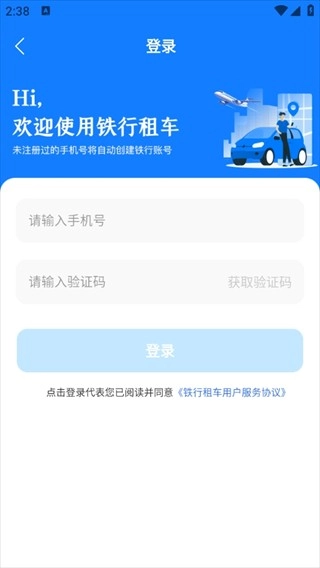 在这个平台上完成铁行租车应用的安装与启动操作,进入应用程序后,找到并进入注册或登录的相关页面。