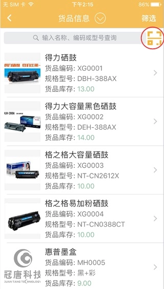 在货品列表右上角点击扫码检索货品。