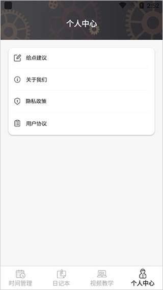 最后,在【个人中心】里,用户可以向策划者提出建议,也能进一步了解希望学软件。