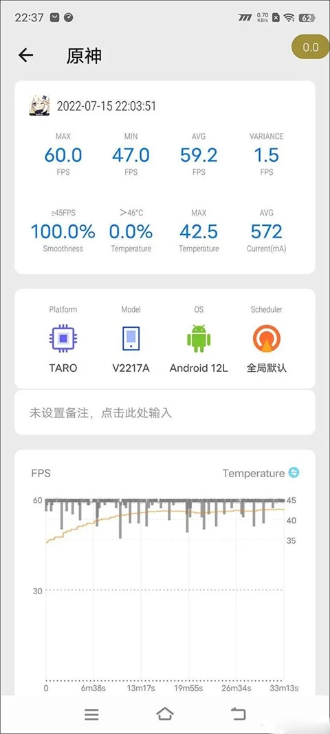 在弹出的界面就能够看到完整的帧率显示图了。
