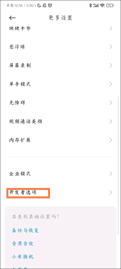 开启开发者模式后,在系统设置里找到并进入开发者选项。