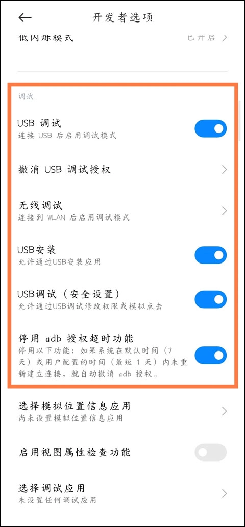 然后将usb调试打开。