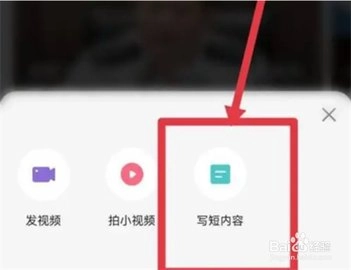 这时页面底部会弹出一个窗口,在窗口内的选项中点击“写短内容”即可进入。