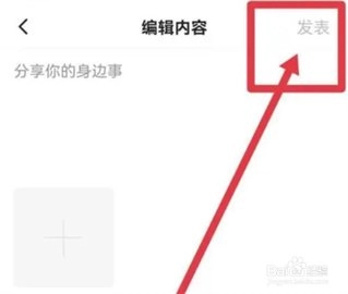 接下来进入编辑内容的页面,在里面输入想要发布的短内容,点击下方方框中的“+”号就能添加图片,编辑完成后点击右上方的“发表”按钮,这条短内容就会成功发布出去。