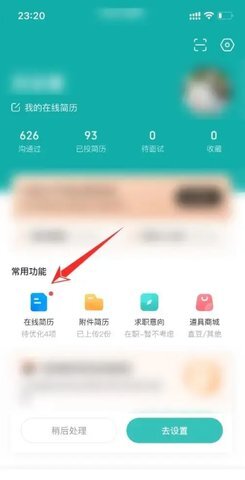 在个人中心页面里,找到并点击【在线简历】选项,就能进入简历的编辑和管理界面。