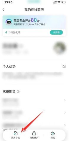 在“我的在线简历”页面里,找到页面底部的【简历导出】按钮并点击它。