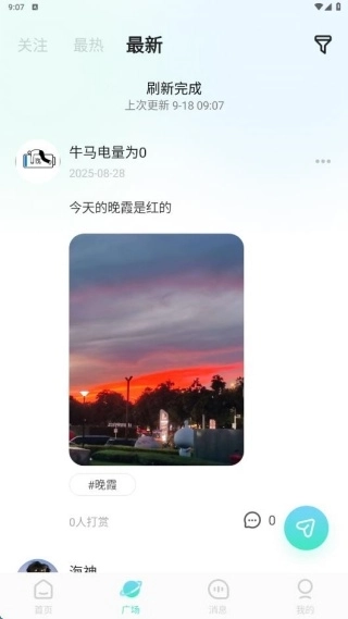 3、进入广场页面后,我们能够浏览到更多用户发布的动态,并且可以实时关注这些内容。
