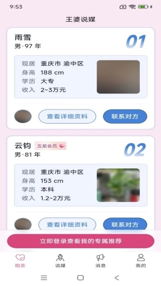 2、高性价比服务:相较于部分传统婚恋服务,王婆说媒网相亲App具备更高的性价比,用户能够以更低的成本参与相亲活动。