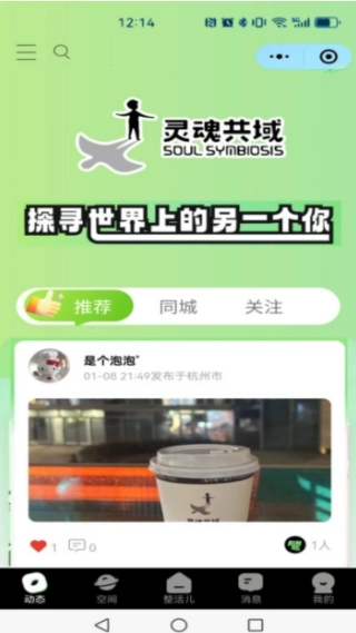 1、安装,打开软件,个人推荐各种互动搭子;