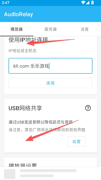 在播放器的设置界面中,可借助IP地址连接或者USB网络共享这两种方式来完成连接操作。