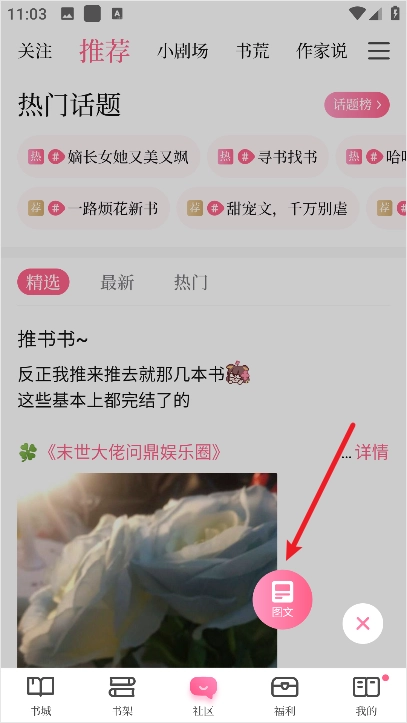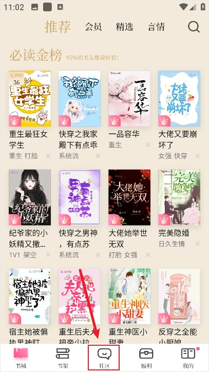 进入红袖添香手机版后点击下方社区