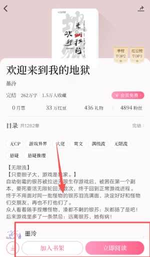 把书添加到书架不仅便于后续阅读,还能开启更新提醒功能,这样就不会遗漏最新的章节内容了。
