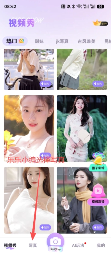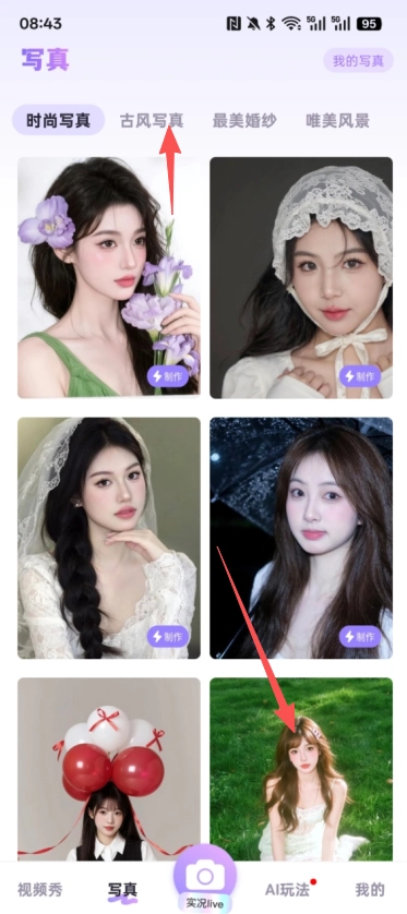 点击写真后,就能自由选择不同类型的写真来拍照啦