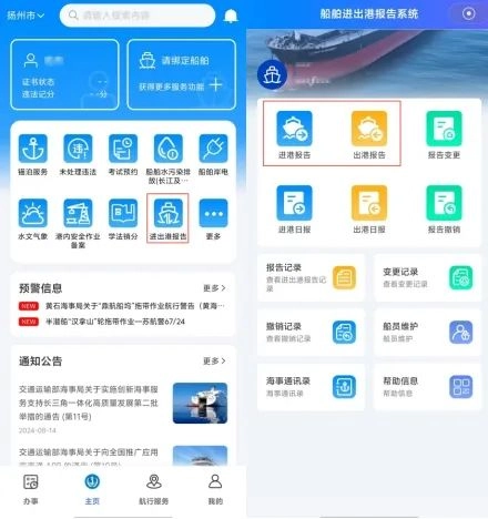 提供船舶进出港报告、领海报告、港内安全作业及船舶检验等事项的办理服务,保障船舶合规运营与安全航行