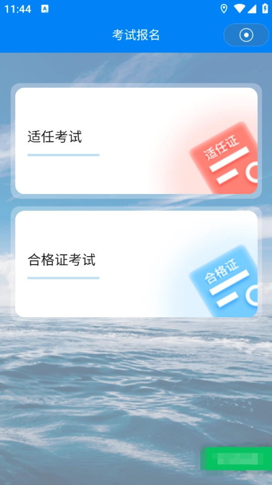 考生可在办事页面找到并点击“考试报名”选项,随后根据自身实际需求,选择“适任证考试”报名通道或“合格证考试”报名通道完成报名操作。