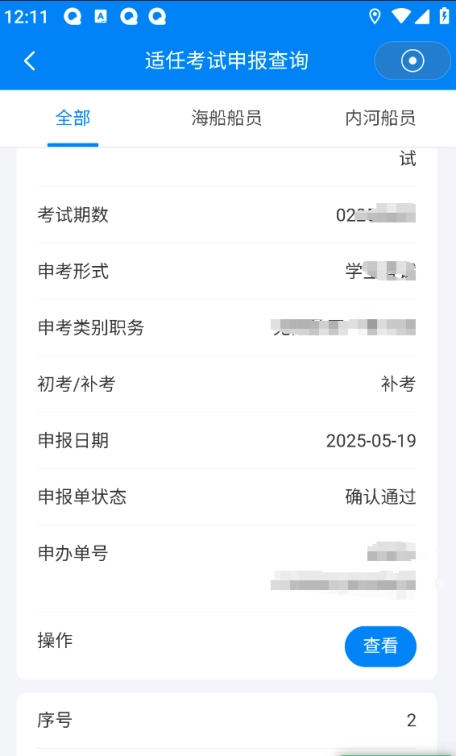 资格审核环节:考生提交报名信息后,初次报考的考生需等待后台进行审核。考生可通过海事通的“考试申报查询”功能,实时查看审核状态。