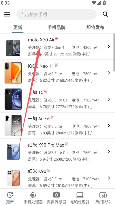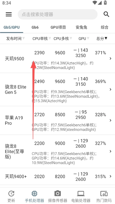 2、查询便捷:可快速检索手机及处理器的详细信息,并且支持排序和筛选功能。