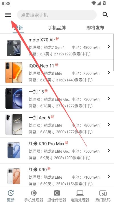 3、参数详尽:提供屏幕、电池、摄像头、传感器等核心参数。