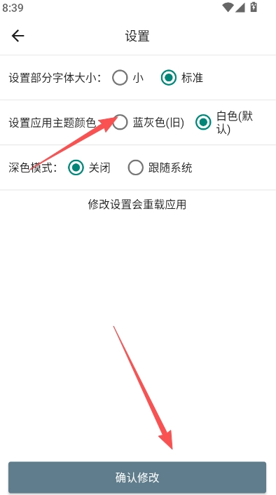 3、选择要修改的应用主题颜色,并确认修改。
