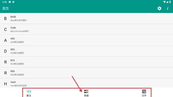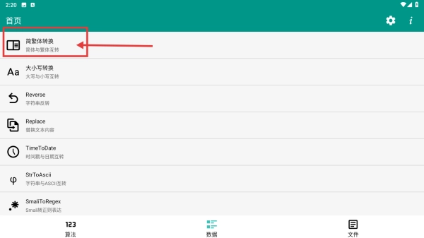 打开文本转换工具应用,点击底部的数据选项,进入数据功能页面。