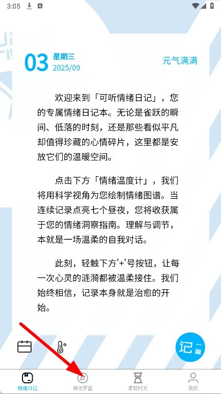 打开应用后,找到底部导航栏中的“晴光罗盘”选项并点击,即可进入晴光罗盘对应的页面。