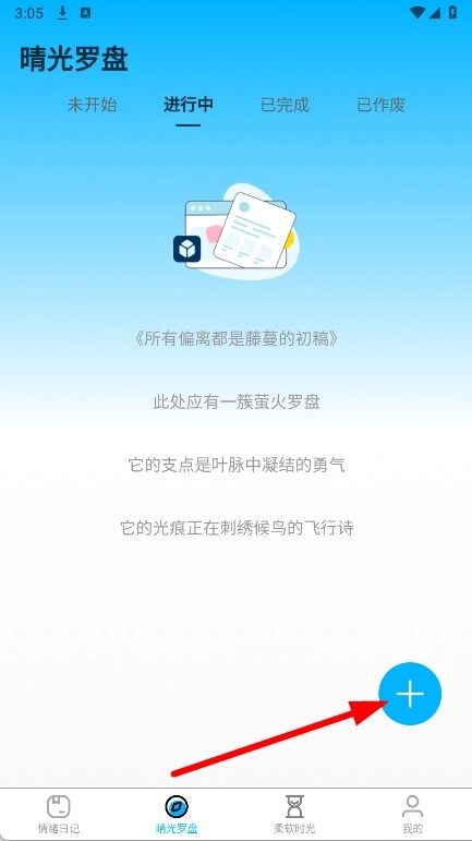 在晴光罗盘页面,点击右下角蓝色的+按钮,即可进入新建Flag的界面。