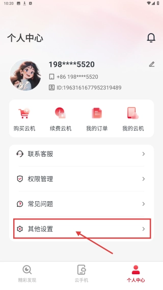 打开联通云手机类应用后,点击底部的“个人中心”选项,即可进入个人中心页面。