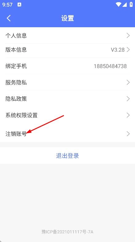 3、进入设置页面后,点击“注销账号”选项,即可跳转至注销账号的确认页面。