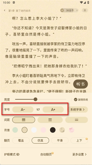 提供字号、字体、行距的调节功能,支持日间、夜间及护眼模式的切换,还能自定义翻页方式与阅读进度条样式,充分适配不同用户的阅读习惯。
