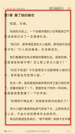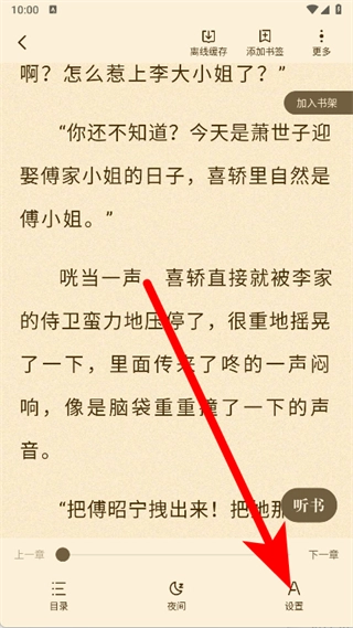 进入小说阅读页面,点击中间位置,点击下方设置。
