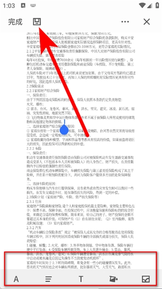 4、编辑工作完成后,点击左上角的完成按钮,即可结束文档的编辑操作。