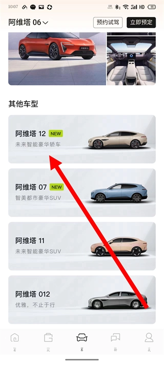 在车型页面,选择阿维塔12车型,进入介绍页面。