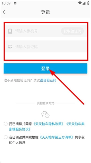 输入手机号码和验证码,点击登录按钮,即可完成账号登录流程。