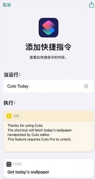 3、提供cuto today和cuto random两种快捷指令,大家可根据需要安装