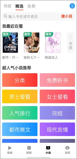 2、小说板块的分类极为丰富,其中有超人气小说推荐,像现代言情便是其一。