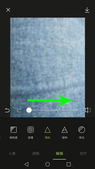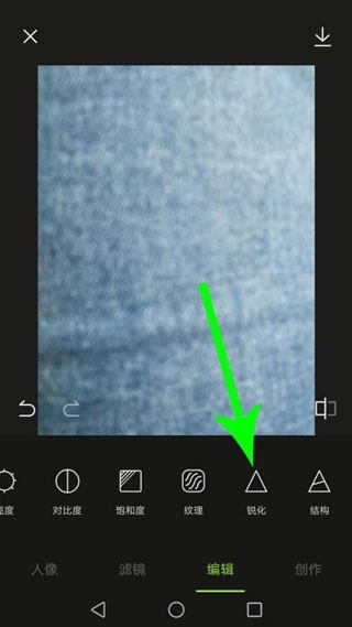 3、优化完毕以后向左滑动工具栏,然后点击“锐化”。