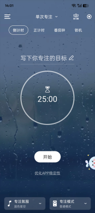1、处于倒计时、正计时或者番茄钟专注的页面当中