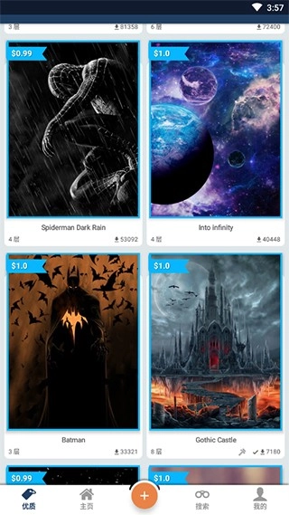 1、打开wallcraft应用,在主页或者“优质”板块中挑选一款自己喜欢的壁纸;