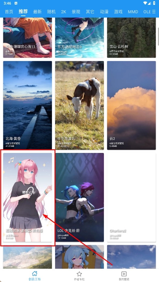 1、点击顶部的【推荐-分类标签】,即可进入推荐壁纸页面。