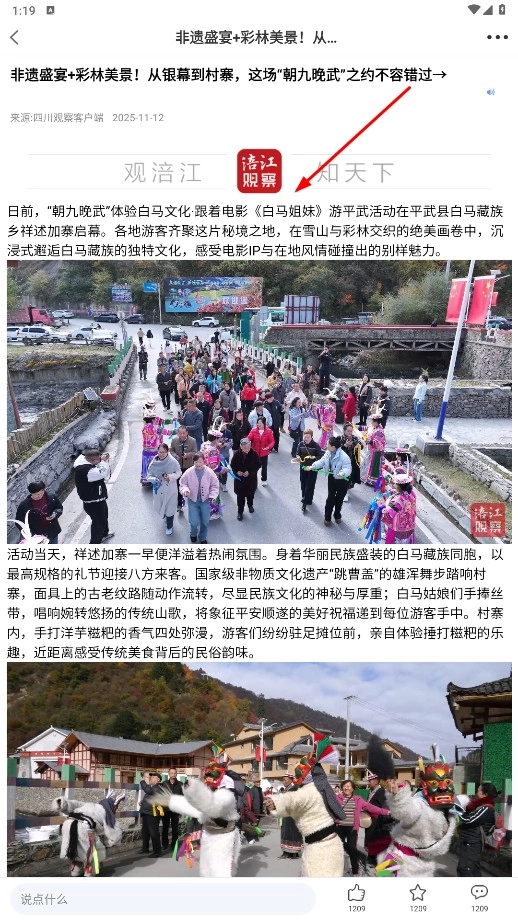 3、进入【媒体资源】板块,浏览相关新闻内容(例如【非遗盛宴+彩林美景】这一新闻),点击该新闻以查看详细信息。