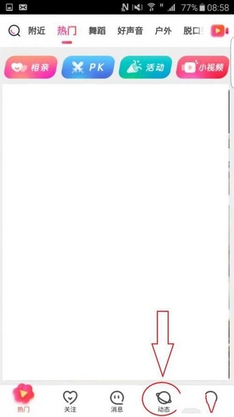 1、点击首页下方导航栏中的“动态”。