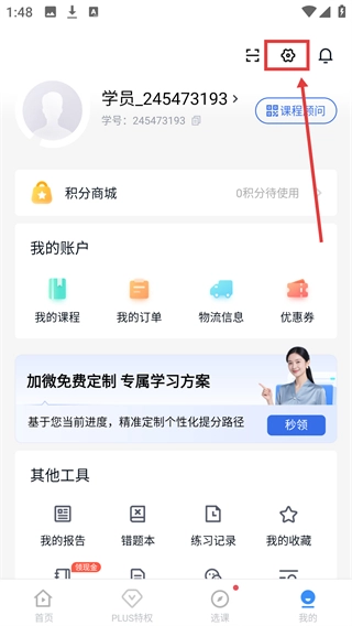 2、打开【我的】页面,点击右上角的【设置】图标,即可进入设置界面。
