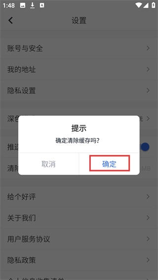 4、点击【清除缓存】后会弹出提示窗口,此时点击【确定】按钮就能完成缓存的清除操作。
