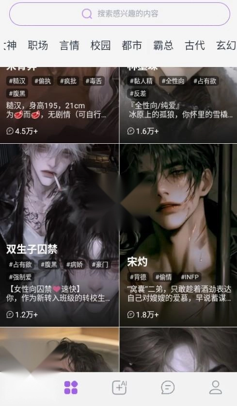 1、会依据你的兴趣偏好和互动行为,智能推送匹配的内容与角色。